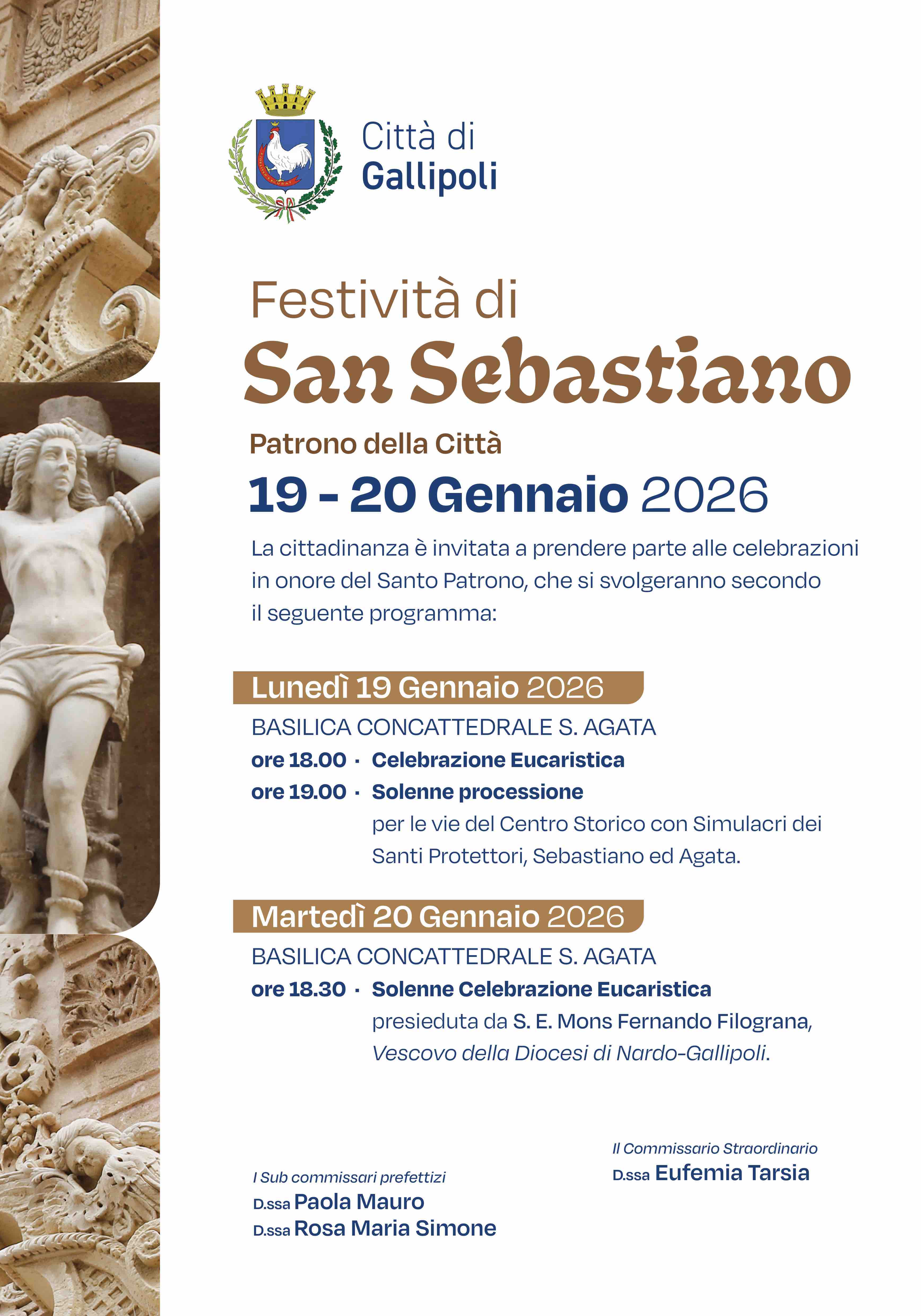 La cittadinanza è invitata a prendere parte alle celebrazioni religiose in onore del Santo Patrono, che si terranno per Lunedì 19 gennaio e Martedì 20 gennaio.